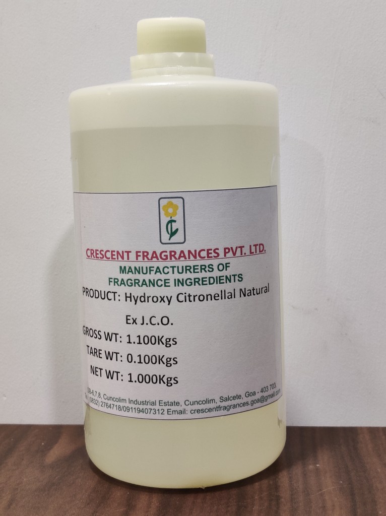 Specification – Ex Citriodora Oil, GC min 95% as sum of isomers, Hydroxy Citronellal min 85%